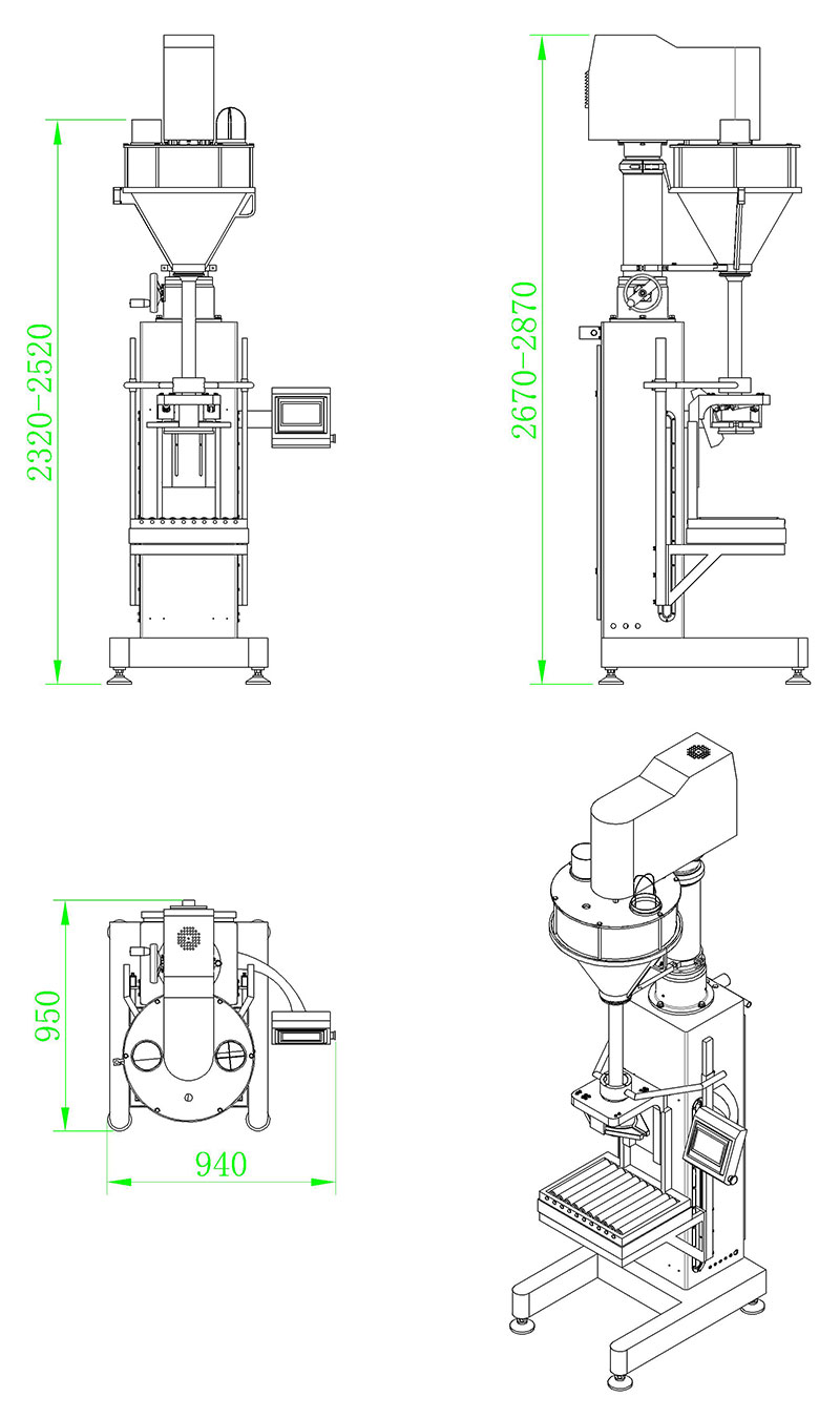 該機(jī)主要針對容易揚(yáng)塵的超細(xì)粉末及高精度的包裝要求而開發(fā)設(shè)計,根據(jù)裝在容器下面的重量傳感器給出的信號完成雙速充填、計量及升降等工作,適用于包裝添加劑、碳粉、滅火器干粉、其它超細(xì)粉末、及有高精度包裝要求的粉末等。