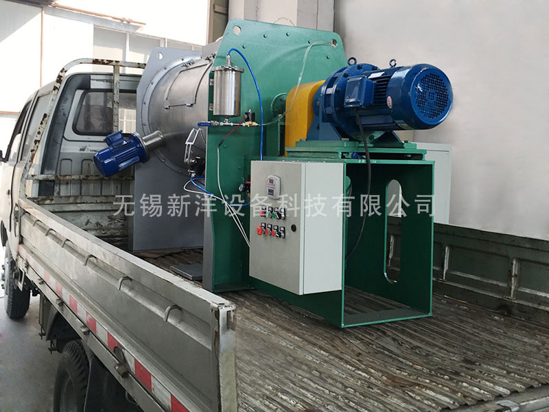 該機型由傳動機構(gòu)、臥式筒體、犁刀、飛刀四部分組成。物料在犁刀作用下沿筒壁作對流運動,當(dāng)物料流經(jīng)飛刀時被高速旋轉(zhuǎn)的飛刀拋灑,從而在較短時間內(nèi)達到均勻混合。能滿足大多固液混合以及造濕粒、干燥等復(fù)合工藝。