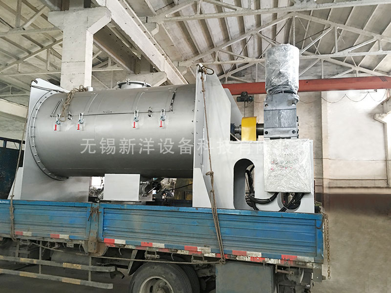 2、臥式筒體:臥式筒體承載物料,筒體上部設(shè)有進料口、觀察孔,筒體一側(cè)開有物料清洗門。