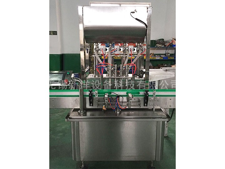 該機具有自動進瓶,瓶自動檢測(有瓶灌裝,無瓶不灌裝),自動灌裝,自動落外蓋,自動旋蓋等功能。同時特別適應誤差較大的國產物料。